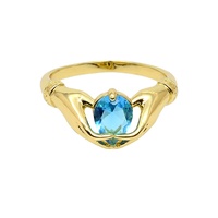 뜨거운 판매 새로운 디자인 블루 핑크 지르콘 스테인레스 스틸 18K 골드 도금 포옹 하트 반지 여성용 보석